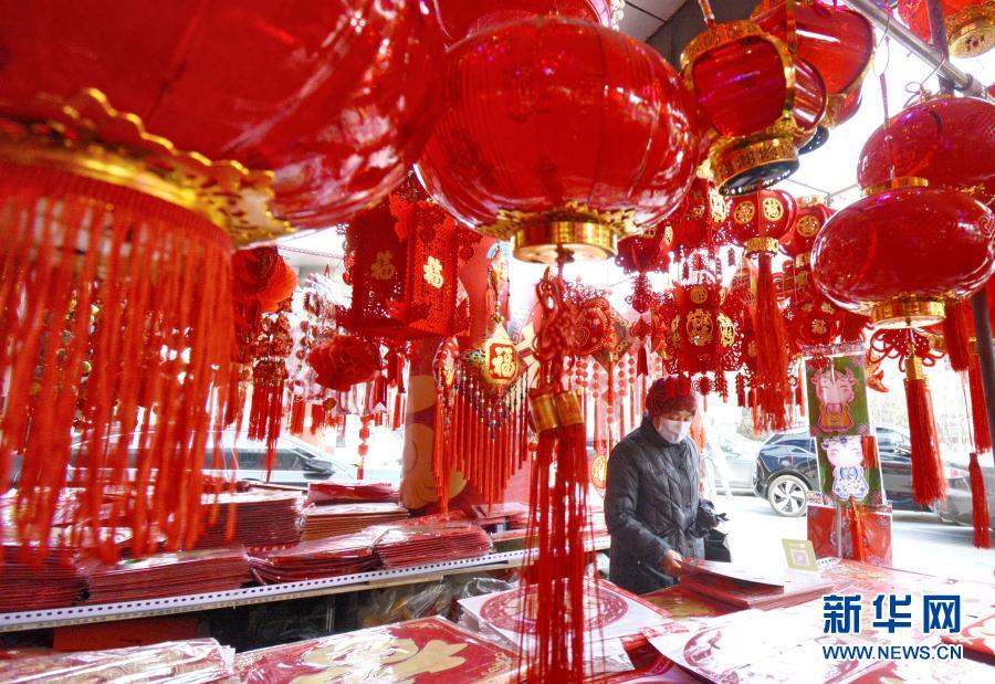 春节临近,北京市民纷纷采购灯笼、春联、年画等装饰品,准备红红火火过春节。