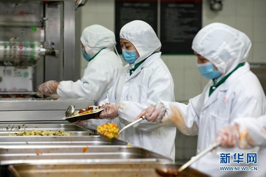 2月2日,在成都印象川之味餐饮有限公司包装车间,工人在制作冷链盒饭。