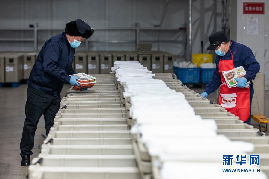2月2日,在成都印象川之味餐饮有限公司冷链成品库,工作人员将制好的冷链盒饭按照车次装入保温箱。