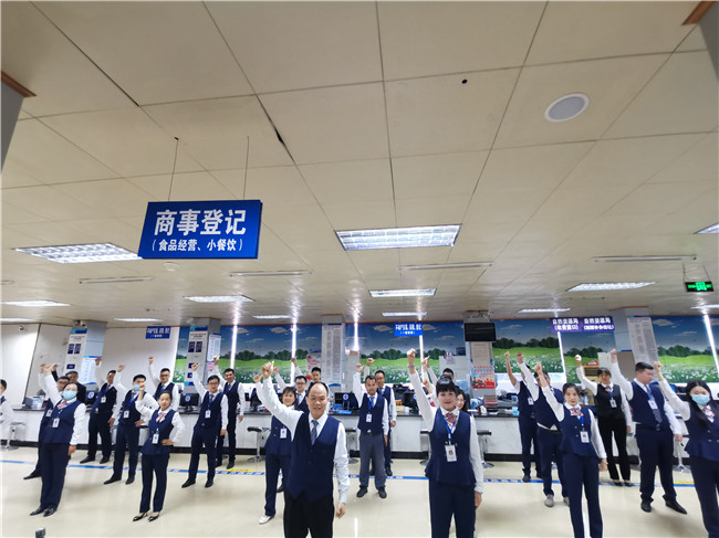 一是在全区政务系统首创班前会制度,利用上班前十分钟时间列队整理形象,交流工作情况、强调服务质量等。
