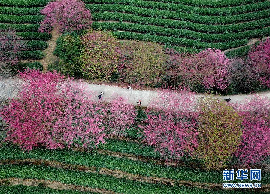 这是2月8日拍摄的台品樱花茶园美景(无人机照片)。