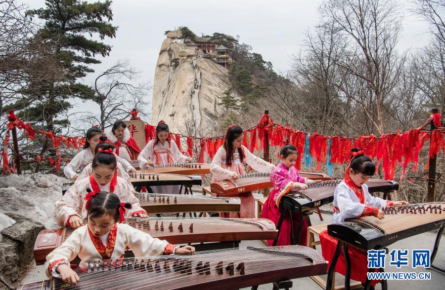 当日,一些来自陕西省华阴市的古筝爱好者,在西岳华山西峰举行了一场古筝音乐会,为游客带来不同凡响的感受。