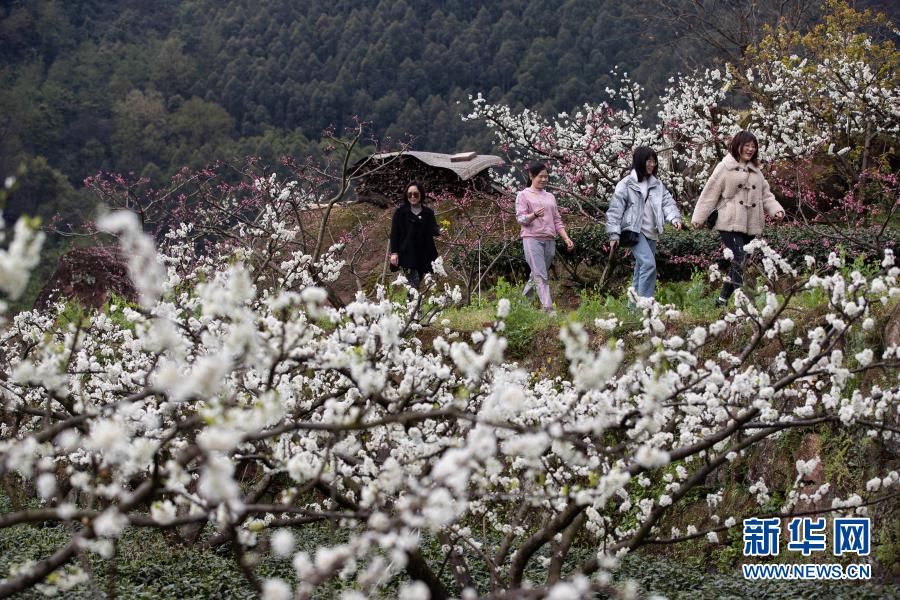 初春时节,四川省丹棱县顺龙乡幸福古村春意盎然,百花齐放,吸引各地游客前来踏青休闲。