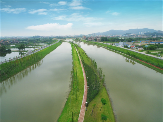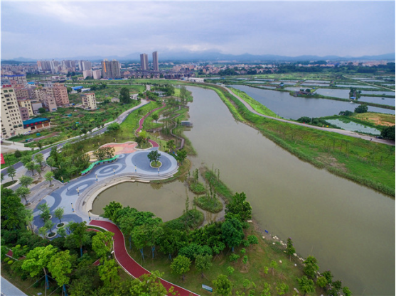 鹤山市沙坪河综合整治工程创新城乡统筹治理模式,注重水污染、水环境、水安全、水生态、水文化全面融合,促进水、岸、城、乡联动提升,塑造文脉与水脉交织的生态碧道。