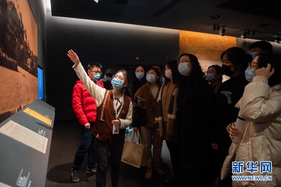3月6日,志愿者(前排左一)在湖南省博物馆为观众讲解。