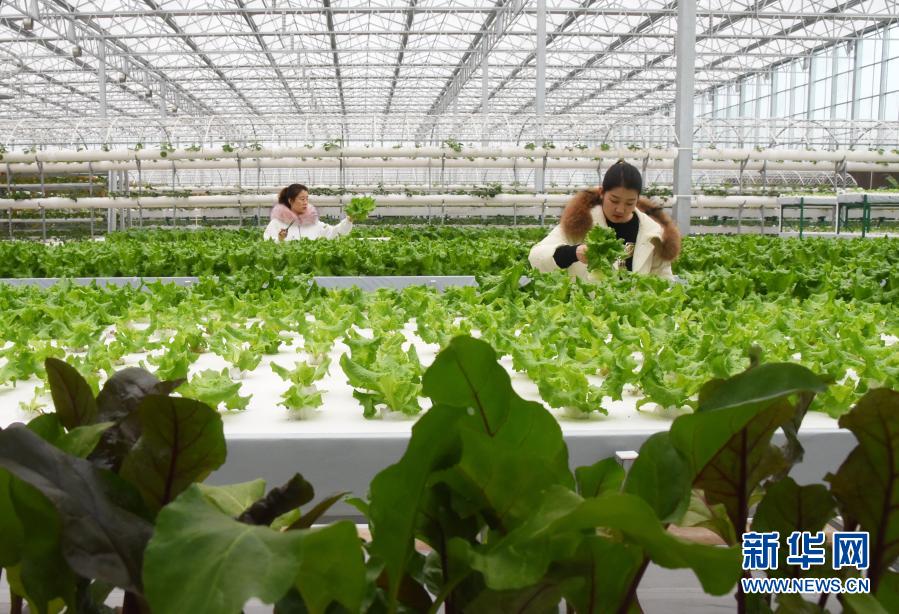 12月30日,游客在河北省河间市一家现代农业园区体验蔬菜采摘。