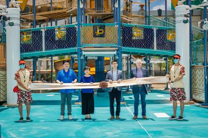 澳门新濠影汇水上乐园于5月22日澳门新濠影汇揭幕,澳门特别行政区政府旅游局局长文绮华、澳门中联办经济部助理赵速、新濠集团首席顾问黄升雄和首席营运总监(澳门业务)David Sisk出席活动。