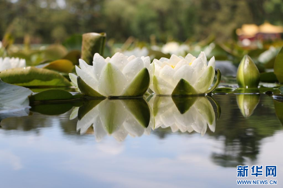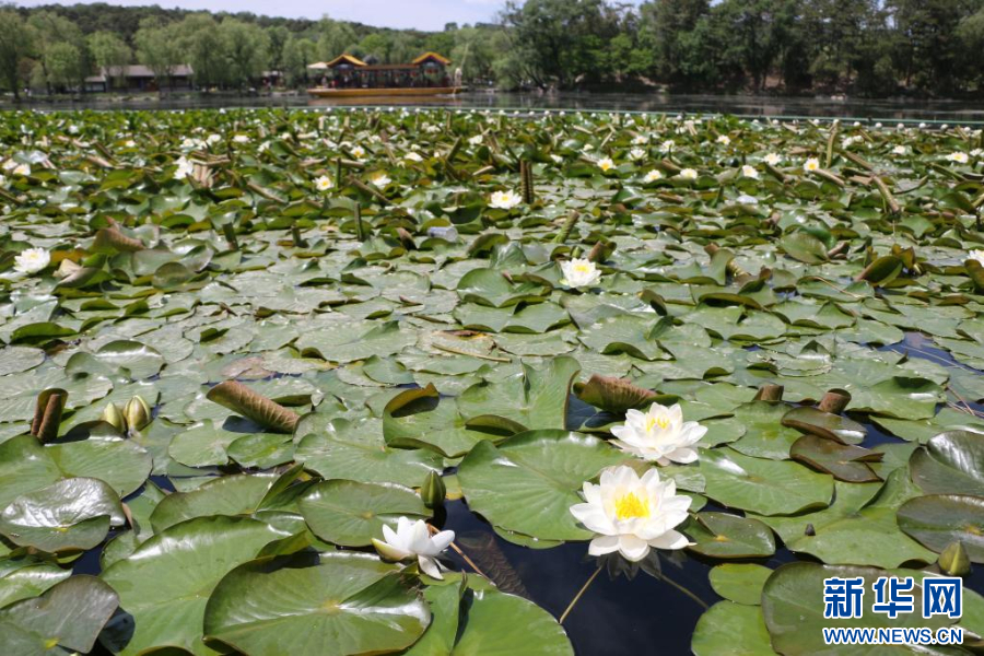 这是6月6日在承德避暑山庄湖区拍摄的睡莲。 近日,河北省承德市天气晴好。世界文化遗产承德避暑山庄内的睡莲次第绽放,水面上幽香浮动,沁人心脾。 新华社发(刘环宇 摄)