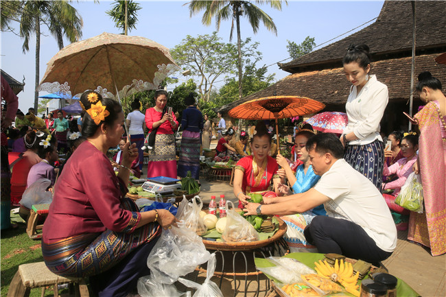 2021年的“云过泼水节”系列民俗活动,以“一村一寨过节庆”为主题,通过“现场+VCR”的形式呈现,对泼水节期间傣族群众的节前准备、祈福、取水仪式、赶摆现场和泼水欢庆等传统文化和活动进行浓缩展示,加上主持人现场互动、体验的形式,让全州乃至全国、全世界的观众通过网络,在云上跟随傣族人民共同过一个完整的泼水节,感受西双版纳欢乐祥和的节日氛围。