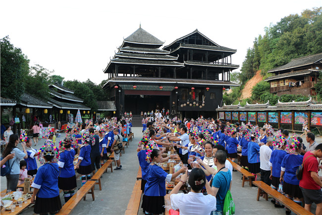 程阳八寨景区有岩寨鼓楼、马鞍鼓楼等9座鼓楼,这便是当地居民重大议事场所和开展文化活动的场地,现在也是招待游客载歌载舞、吃百家宴的地方,成为主客共享的民族人文环境。