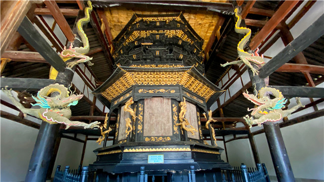 云岩寺内飞天藏是一座巨型木塔,也叫转轮经藏,俗名星辰车,建于南宋淳熙八年,是全国唯一保存完整的宋代道教转轮经藏。