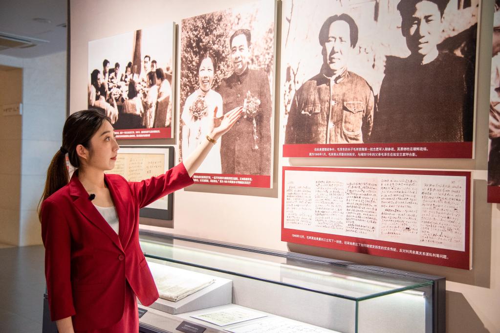 王霄在中国共产党纪律建设历史陈列馆内讲解。新华社记者 伍至尊 摄