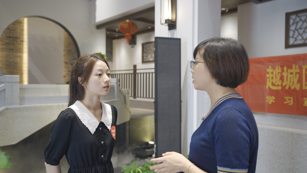 “演绎跌宕起伏的故事情节,少不了不同人物的形象模仿,有时还要演绎环境音,比如走路的声音、摇船的声音,但我心里很害羞,当众表演总带着一点生硬。”陶婷婷说。