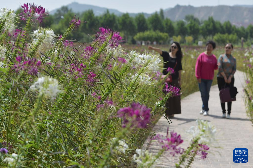 9月4日,游客在永靖县刘家峡镇黄河花堤上赏花。 近日,甘肃省永靖县刘家峡镇黄河花堤上种植的百合、紫薇等花卉竞相绽放,吸引不少游人前来休闲观光。近年来,永靖县刘家峡镇依托黄河生态资源,打造集休闲旅游、生态保护为一体的“花园式”景观带,不断提升小城“颜值”。 新华社发(史有东 摄)