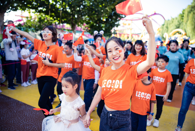 今年的国庆节是全国人民庆祝中国共产党成立100周年之际迎来的国庆节,北京市各大景区纷纷推出系列活动为祖国母亲庆生,北京欢乐谷也不例外。每天早上开园前的仪仗队升旗仪式英姿飒爽,超百名由最小三岁儿童,最大八十余岁老人组成的红歌快闪团每日唱响“我和我的祖国”感人心弦。