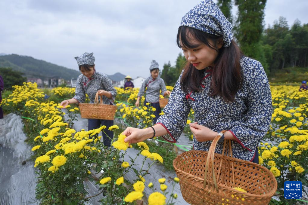 11月4日,在浙江省青田县阜山乡轩德皇菊基地,工作人员在采摘皇菊。 11月初,浙江省青田县阜山乡的千亩皇菊基地进入收获期,吸引游人慕名前来。近年来,浙江省青田县阜山乡依托盆地和梯田种植了1200亩皇菊,年产值3000余万元,吸纳了当地100余名村民就业。村民不仅能得到土地租金分红,还能直接在家门口就业,每年仅村民劳务等费用发放就超过200多万元。当地皇菊产业已经成了青田农旅融合发展、产业兴旺发展的一张金名片。 新华社记者 徐昱 摄pagebreak