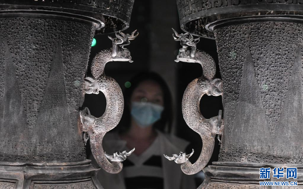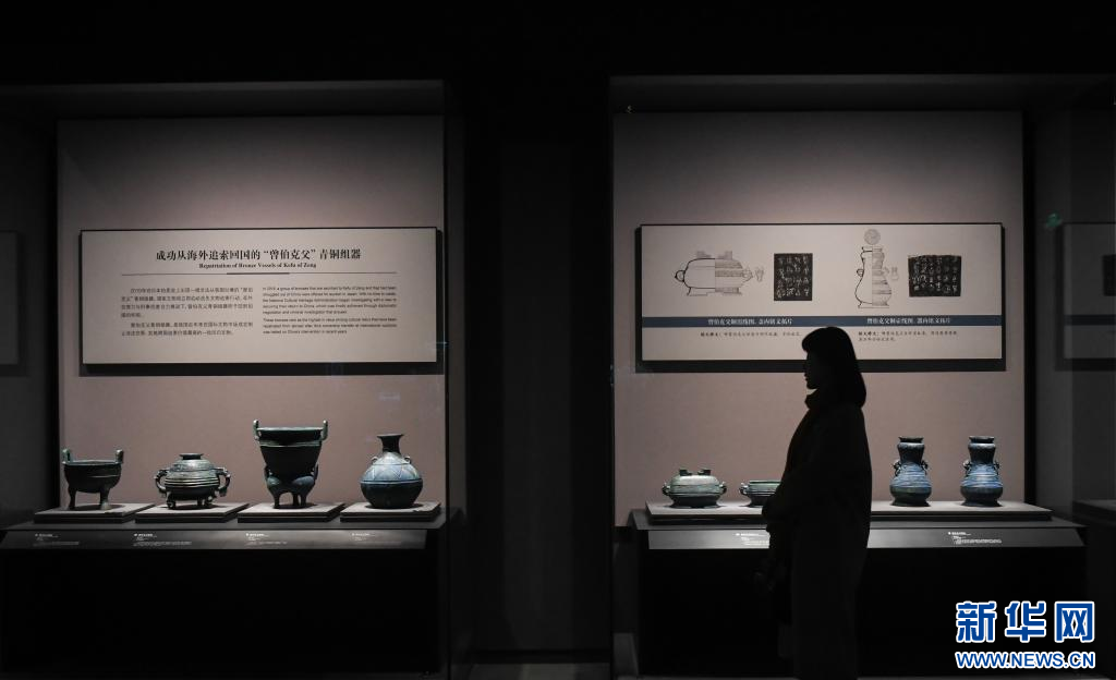 12月20日,参观者观赏一组于2019年从日本追索回国的“曾伯克父”青铜组器。