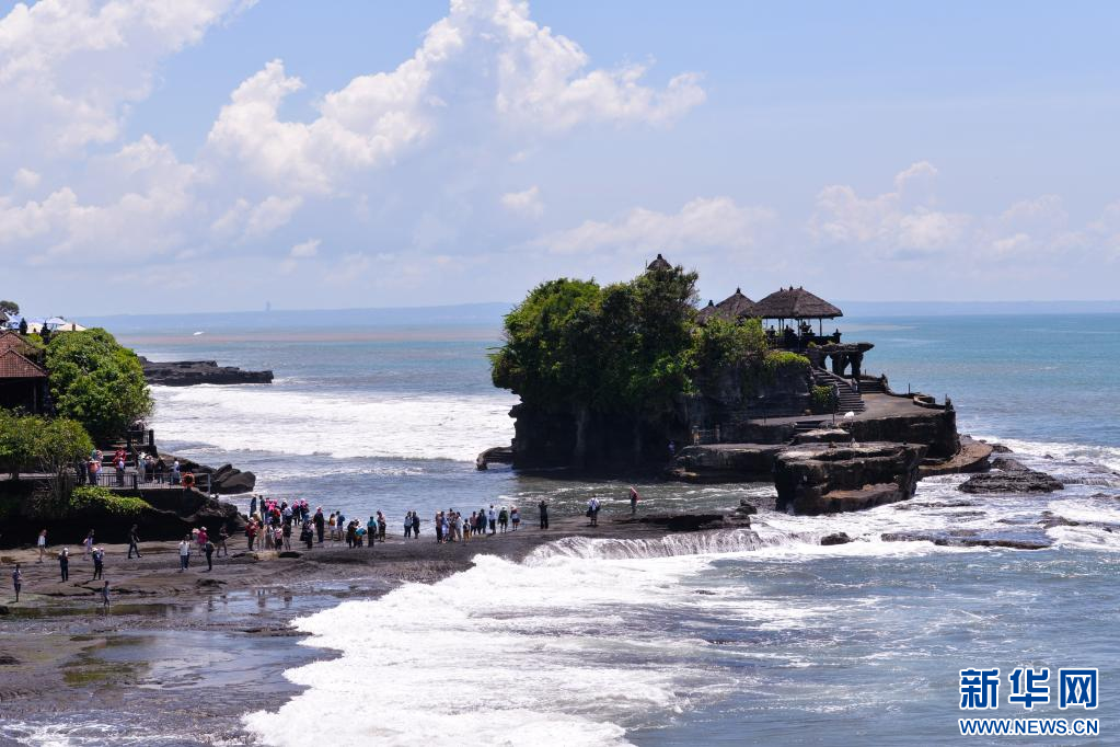 12月18日,在印度尼西亚巴厘岛,游客在海神庙景区参观。