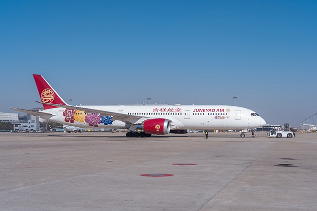 图为吉祥航空787执行春运首日HO1177三亚航班