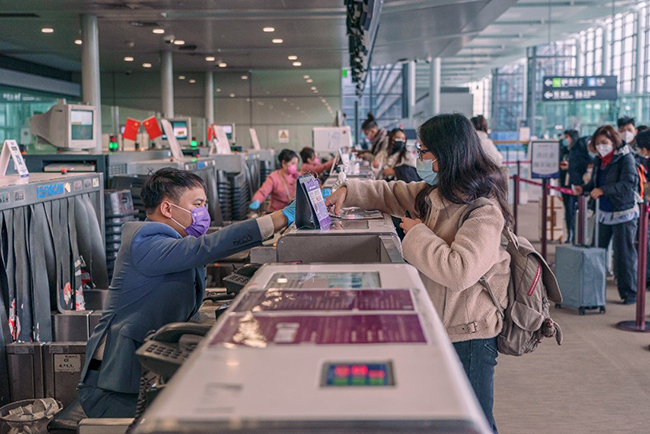 图为吉祥航空一线人员为旅客办理值机托运手续