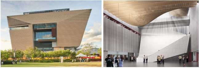 香港故宫文化博物馆外观(左)、香港故宫文化博物馆内景(右)