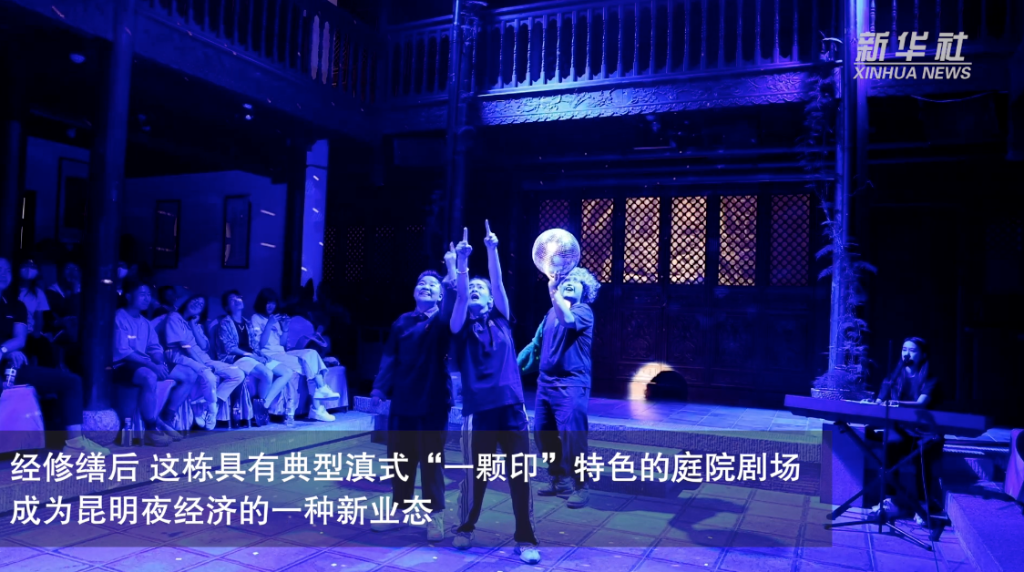 云南昆明的“网红夜市”南强街,不仅有琳琅满目的云南各色风味小吃,还有“南强街八十八号”这一具有滇式“一颗印”特色的小剧场,演出极具云南特色的滇剧、折子戏、即兴喜剧等,逐渐成为市民夜生活的新选择,为夜经济的发展注入新活力。