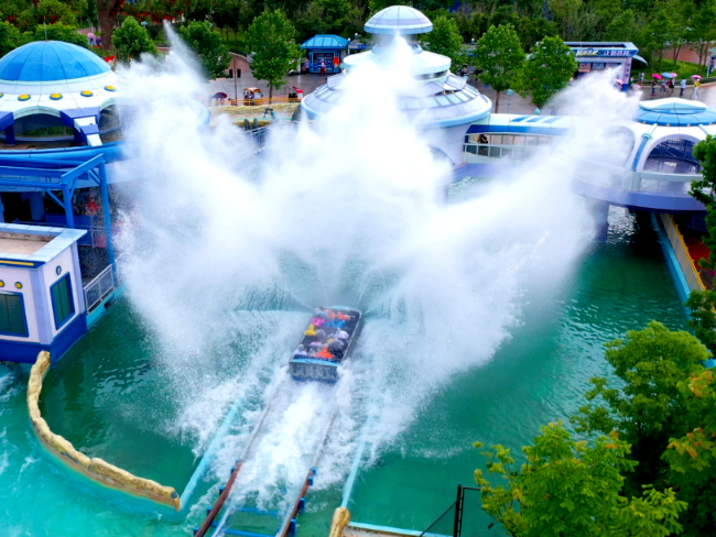 众多家庭游客选择了兼顾惊险刺激与阖家同乐的主题项目,有的一家老少乘坐家庭过山车《火线追击》体验翻滚时速,有的亲子游客在大型轨道漂流项目《星河探险》中畅享乘风破浪的“穿越星河”体验。