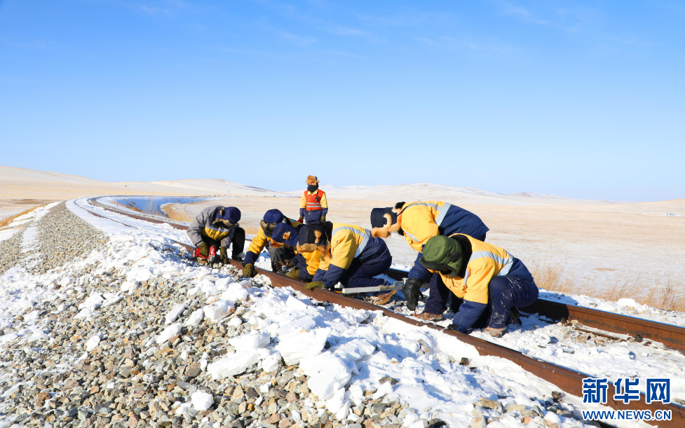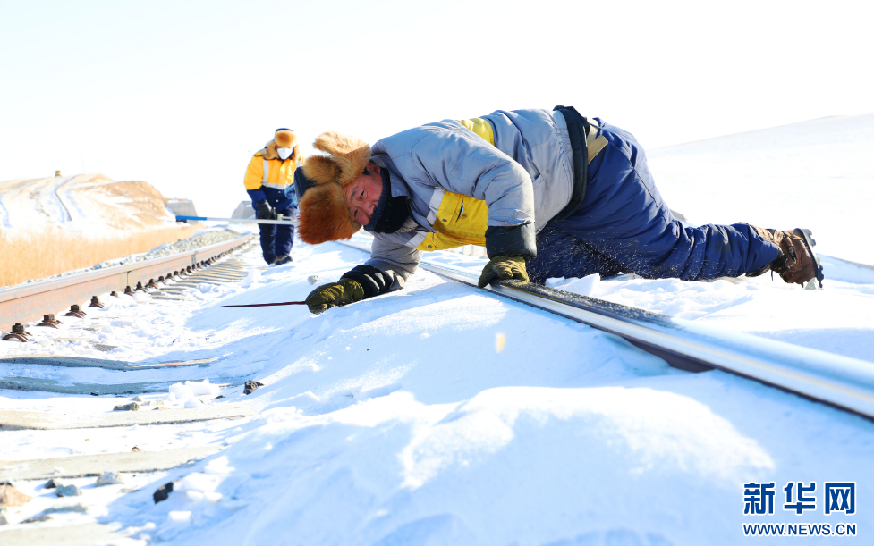 1月12日,地处锡林郭勒草原的最低气温达到零下25℃,“白毛风”肆虐。中国铁路沈阳局集团有限公司通辽工务段沙尔塔拉线路车间的干部职工正在霍白线61公里处理线路冻害。