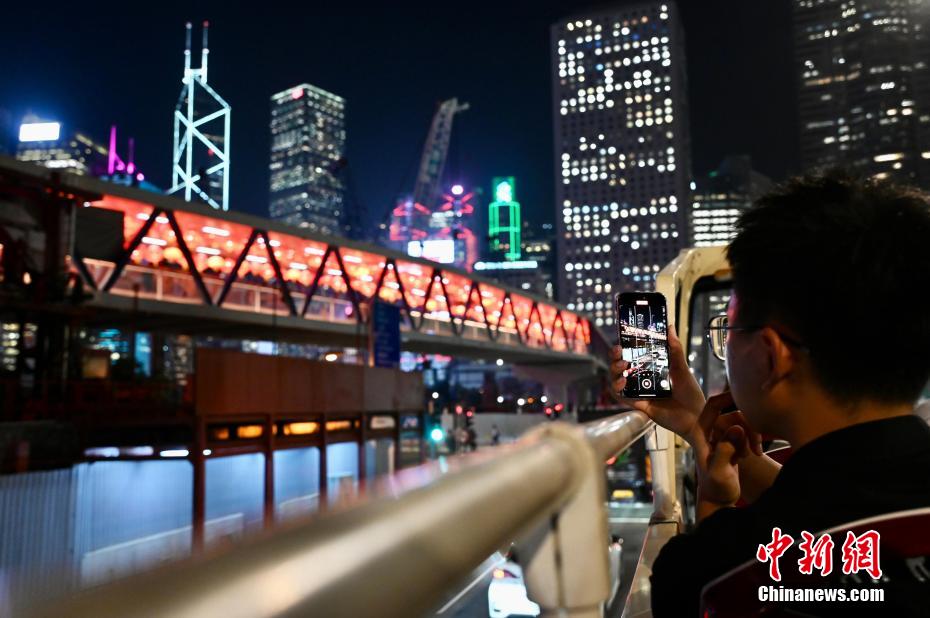 乘客乘搭观光巴士参与夜游香港岛活动。中新网记者 李志华 摄