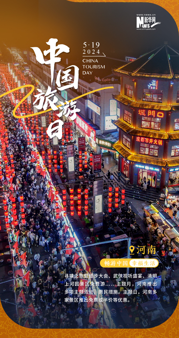 2024年5月19日是第14个中国旅游日。今年活动主题是“畅游中国,幸福生活”,以“主题月、主题周、主题日”等形式开展一系列活动。