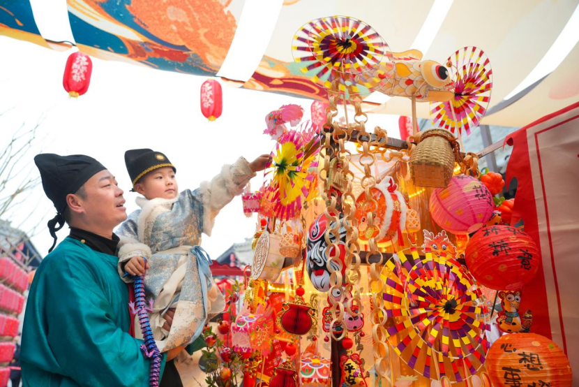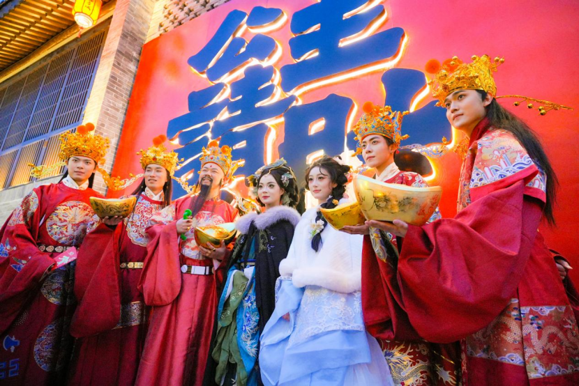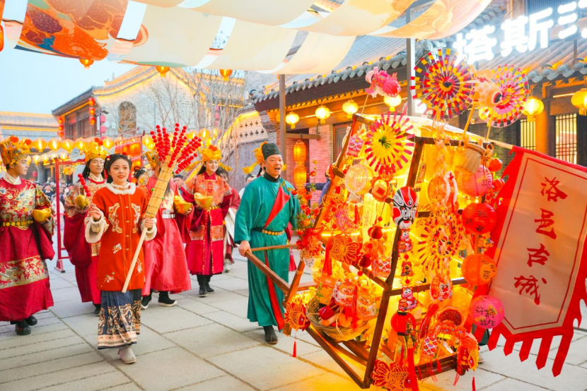 人间烟火气,坊里过大年。在除夕当天,河南洛阳市洛邑古城内处处洋溢着富有烟火气的场景氛围,非遗展示、民俗表演、汉服体验、美食分享等浓厚的民间坊里过年活动精彩纷呈,来自全国各地的游客在这里沉浸式体验传统民俗文化盛宴,徜徉其间感受原汁原味的地道中国年。来自广西的游客李文明与朋友身穿汉服在洛邑古城内游玩打卡,兴味盎然:“在古都洛阳过年,每一处都弥漫着浓浓的人间烟火气,是一次独一无二的春节体验。”春节假期,洛邑古城开展传承千年的民间古城许愿祈福、文昌赐福、拜年、送穷神、汉服婚礼等传统民俗活动,市民和游客徜徉其间,感受浓浓年味。