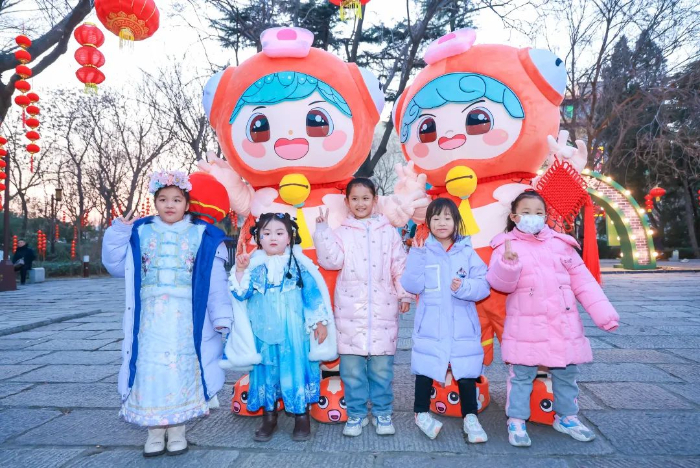 “鲤好宝宝”系列美陈造型现身明湖市集,成为人们游览之余的热门打卡项目。本届灯会吉祥物“鲤好”宝宝也亲自登场,手持大红灯笼热情洋溢地穿梭在人群中,与市民游客俏皮互动,送上新春祝福,引来市民游客纷纷拍照打卡。