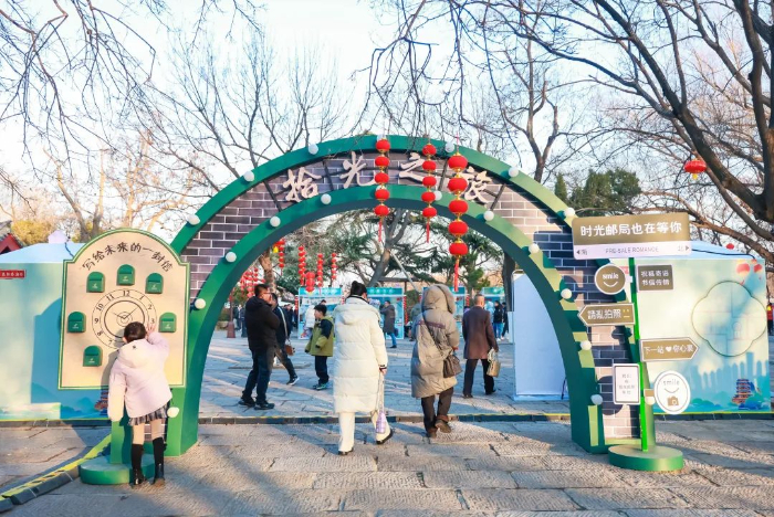 庙会期间,大明湖景区打造三大主题区域。位于西南门附近邮政广场的拾光之旅展区,新增邮政主题特色市集展位,市民游客来到“时光邮局”,给一年后的自己和家人朋友寄去书信,让新春的美好祝福穿越时间,储藏浪漫。