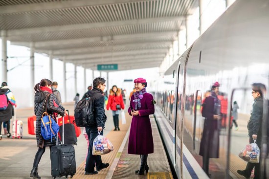 2018年春运,完成值乘任务的复兴号列车长开心退乘。