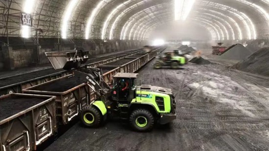 石家庄铁路物流中心井陉营业部一条铁路专用线装车点的煤炭装车如火如荼。