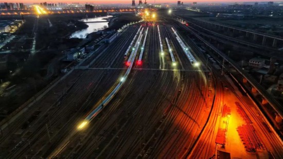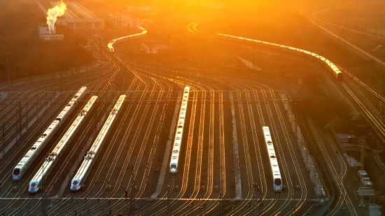 除夕当天,石家庄动车运用所被金色的晨曦照亮。