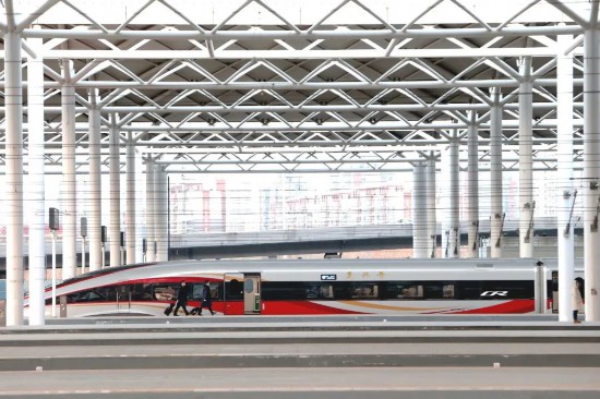 除夕当天,一列复兴号智能动车组蓄势待发。