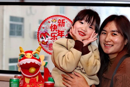 2024年2月4日,小旅客和妈妈笑容可掬。