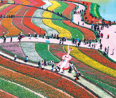 游客在江苏省盐城市大丰区荷兰花海景区赏花游玩。杨素平摄