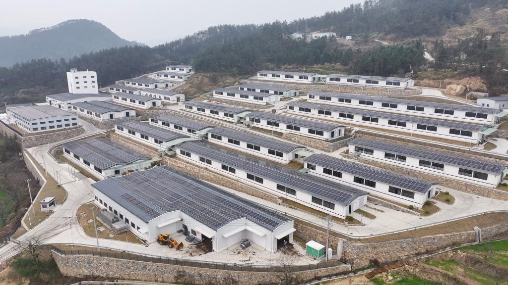 养殖基地的羊舍屋顶铺满了光伏板。新华社发