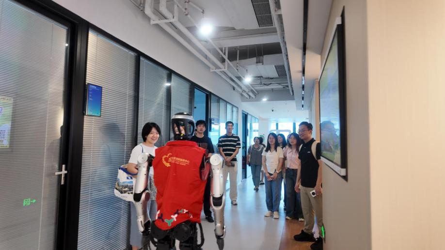 机器人讲解员引导参观河套福保园区党群服务中心