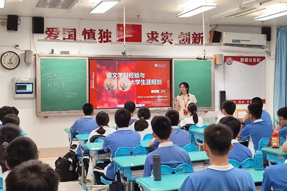 在高中交流活动中,30名实习生代表作为“传薪者”,分组走进红岭中学高中部、北京大学附中深圳学校、香港中文大学(深圳)附属明德高级中学,围绕学习方法、大学生活与生涯规划展开交流,用梦想之光点亮高中生的未来之路。