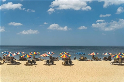 海滩防护 穿防滑胶鞋,避免赤脚接触沙滩死鱼或贝类,高危人群下海更要注意。