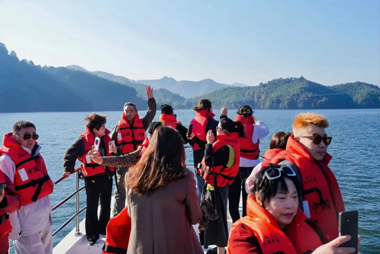 11月15日,旅行商代表们分五路行进,踏上了迎驾大庄园生态体验之旅,深度感受大别山的自然与人文之美。在迎驾大庄园,代表们打卡迎驾水世界、春风露营地、春风研学营地,体验汉驰航空直升机上俯瞰大别山的独特空中视角;走进霍山红色区域中心纪念馆,感悟大别山精神的深厚内涵。