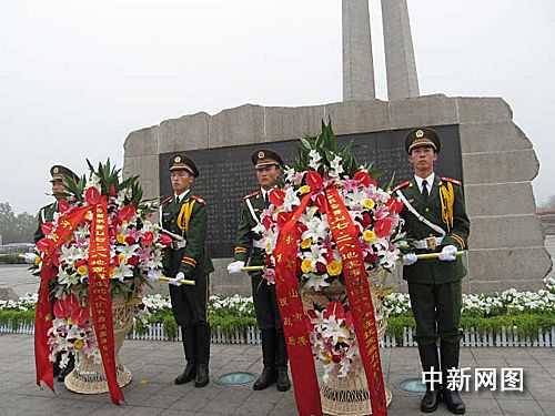 河北省举行向唐山地震纪念碑敬献花篮仪式(图)