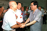 7月28日晚,正在唐山考察工作的中共中央总书记、国家主席、中央军委主席胡锦涛,在紧张的行程中特意抽出时间,接见了杨长禄和张念一,向他们所在的康复村地震截瘫伤员、工作人员和幼儿园小朋友、老师表示亲切的问候。
