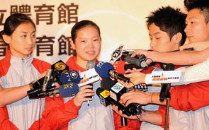 大陆奥运体操及蹦床冠军访问台湾[组图]