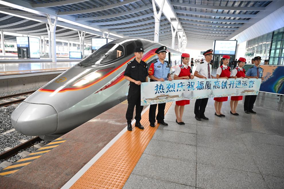 28日上午9时15分,“复兴号”智能动车组G9801次列车从福建省会福州出发,沿着台湾海峡西岸的海岸线,向闽南厦门的方向疾驰。自此,全长277公里的福州至厦门至漳州高铁(福厦高铁)全线开通。