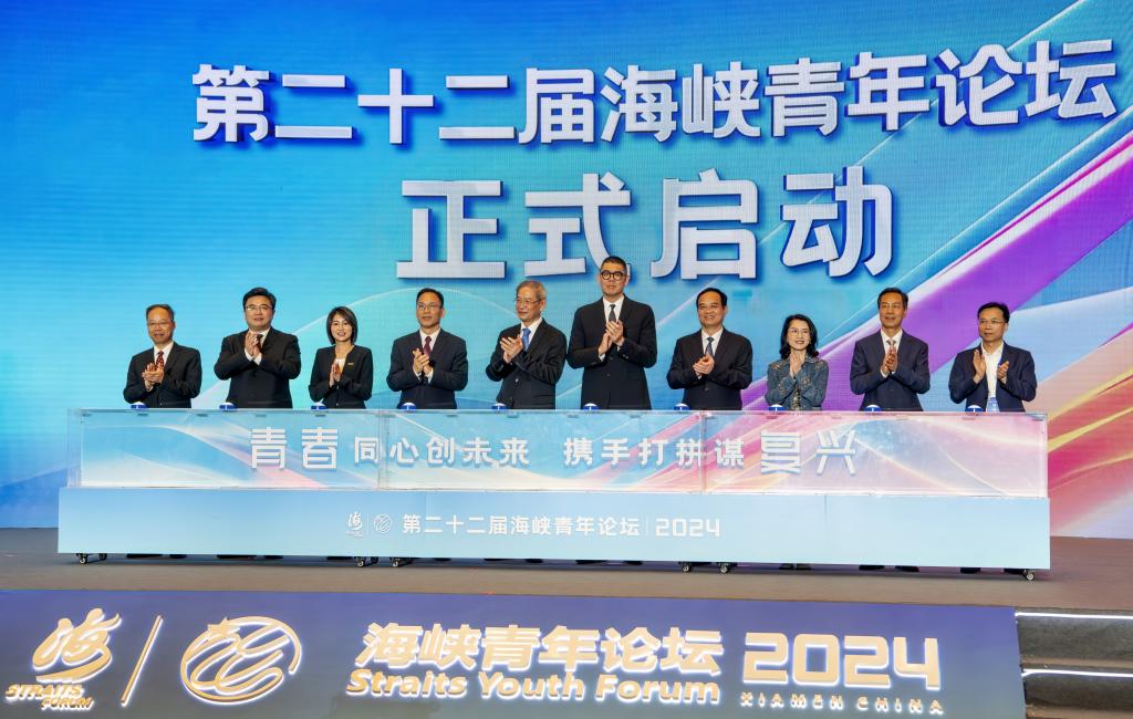 6月14日,出席海峡青年论坛的嘉宾共同启动第二十二届海峡青年论坛。新华社记者 魏培全 摄