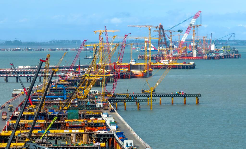 这是厦金大桥(厦门段)海上桥梁大规模装配化施工现场(无人机照片,2025年6月13日摄)。新华社记者 魏培全 摄